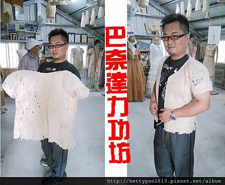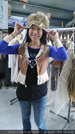 這裡有完成品的樹皮帽跟樹皮背心可以試穿及拍照!(Betty可是拍的不亦樂乎呀!)