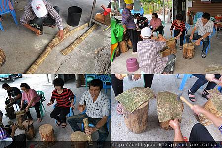 接著,就開始一直敲打樹皮(使之軟化),這時樹皮會有汁液,頗臭的~