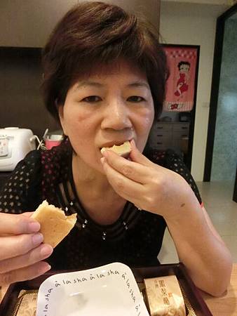 鳳梨酥的內餡咬得到鳳梨果肉的口感,外餅皮很酥香而且口感很紮實(咬嚼)