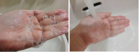 擠了一點洗髮精在手上試試看會不會乾乾澀澀的,實際上證明是不會的喲!!