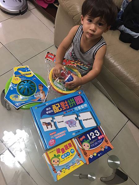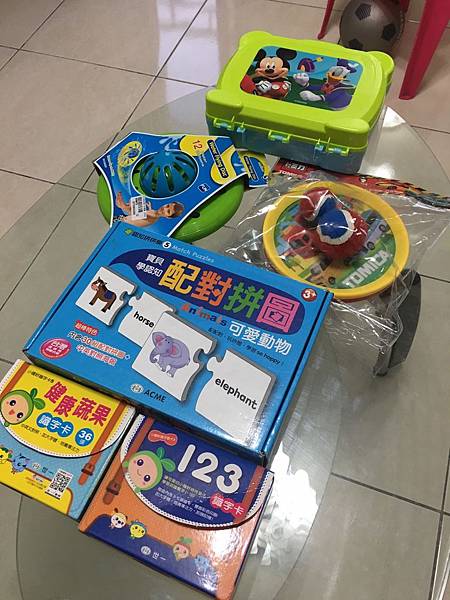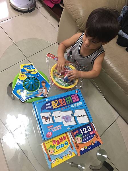 除了讓諾寶學習讀字、拚圖外,還有一些動態的飛盤玩具
