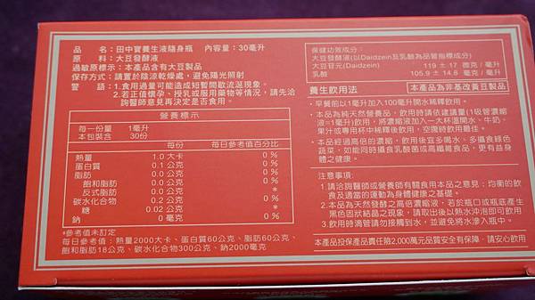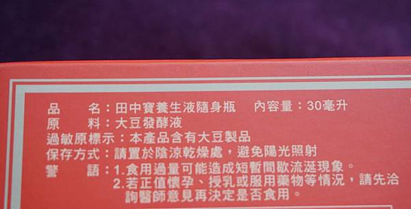 此次分享的田中寶養生液隨身瓶為30ml的,市售另有容量180ml,供全家人一起享用。