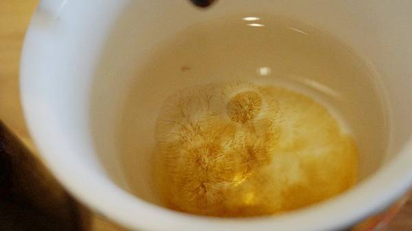 滴到水裡的顏色是咖啡色,液化的速度很快~完全不用攪拌它!
