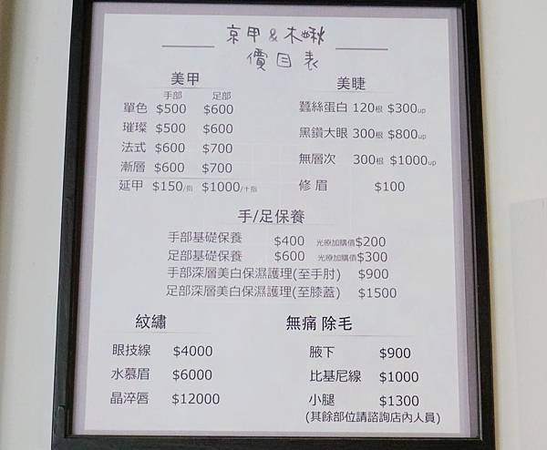 他們的服務項目很多元化,除了美甲及美睫外~還有除毛、紋繡、新秘的服務