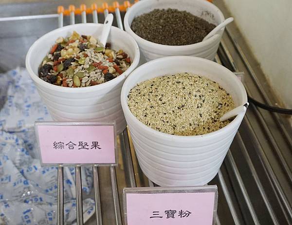 配料區:芝麻粉、綜合堅果、三寶粉