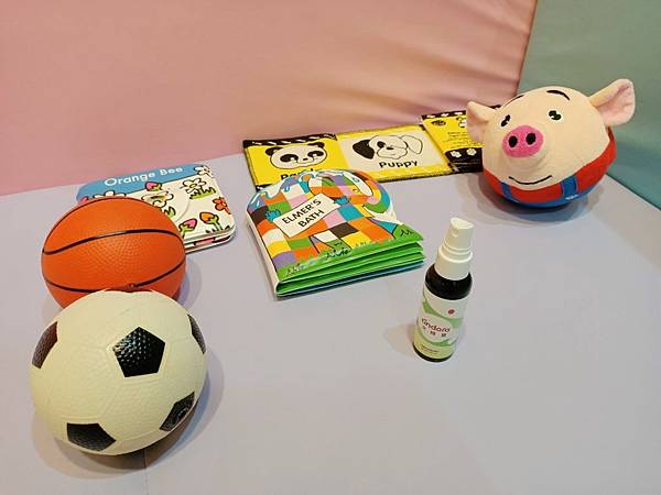 遊戲墊或是書本及球類,都可以直接使用次綠寶去清潔抗菌